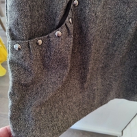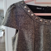 Harmaa mekko metallinikkeillä, vetoketjulla ja vuorilla. Kainalo-kainalo mitta 46cm. Olka helma mitta 80cm. Merinopuuvilla langasta tehty