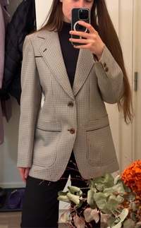 Tyylikäs houndstooth-kuvioinen bleiseri, hyvässä kunnossa.