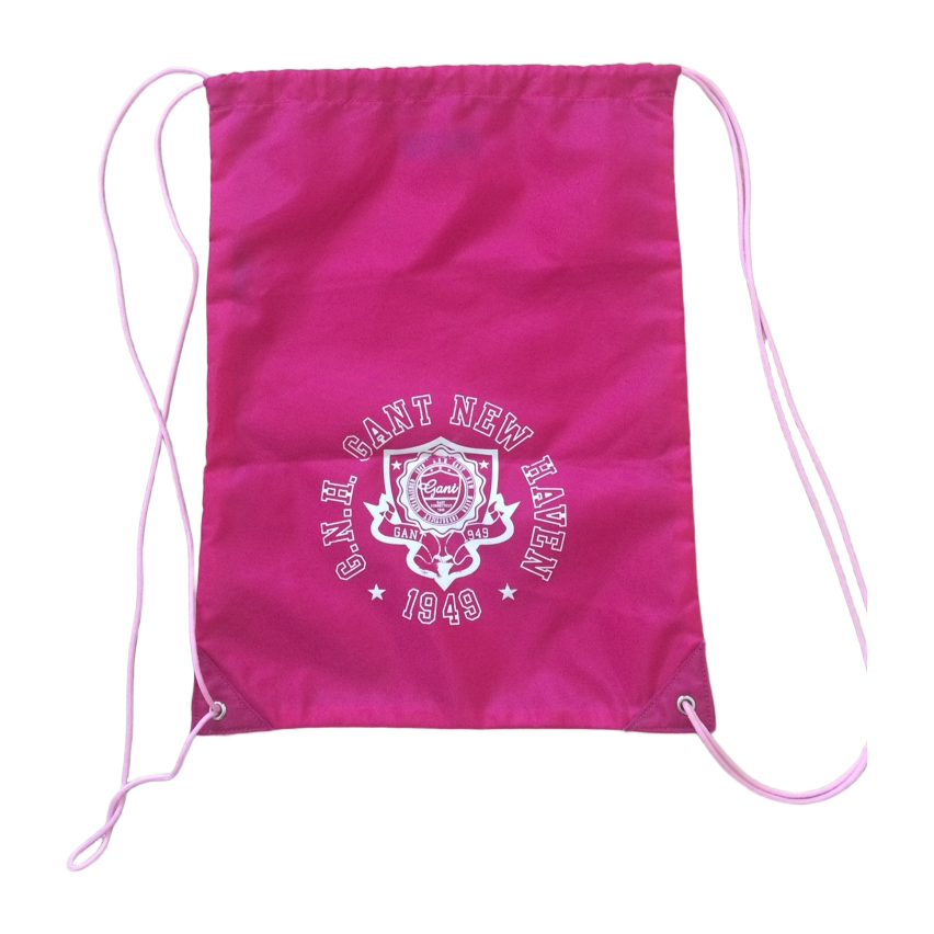 Gant jumppakassi, joka sulkeutuu helposti olkahihnoista vetämällä. Olkahihnoista kantamalla kassia voi käyttää reppuna. Materiaali 100% nylon. Oikein hyväkuntoinen. Mitat: korkeus 42 cm, leveys 30,5 cm.