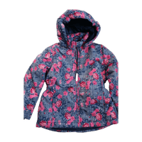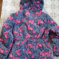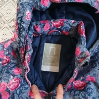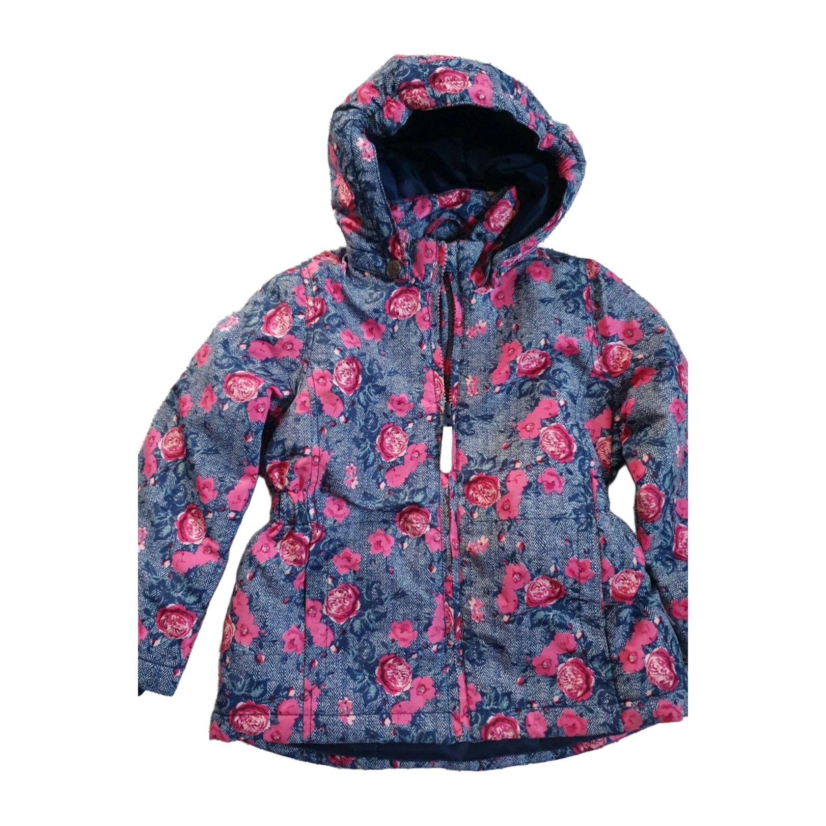 Ruusu- / kukkakuvioinen takki, 5y 110cm. Tämä on talvitakki, muttei mitenkään erityisen paksu sellainen.