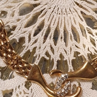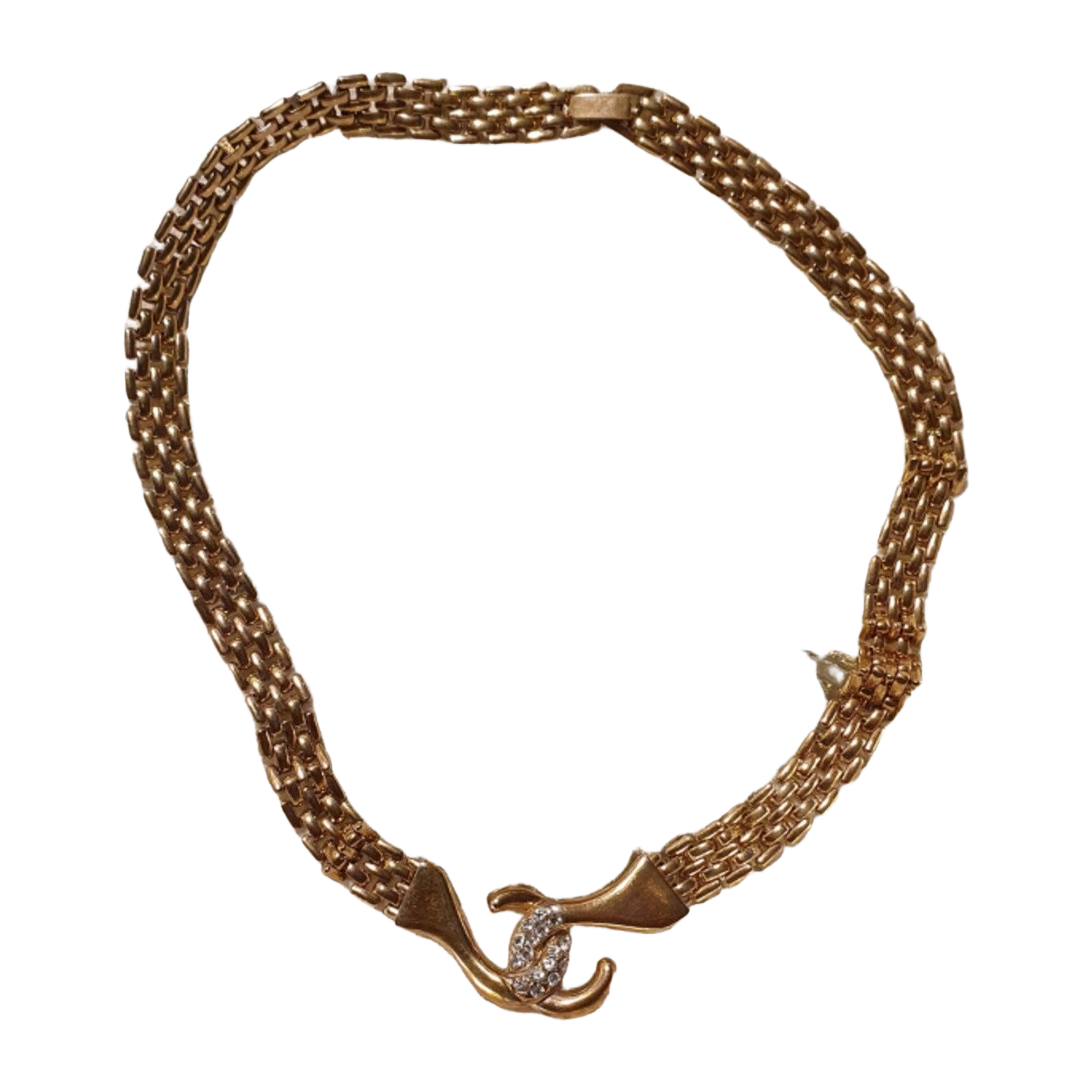KULLANVÄRINEN KAULAKORU; 90-luku. Koukut, joissa strasseja. Pituus 44cm.