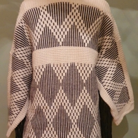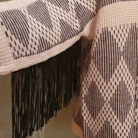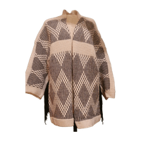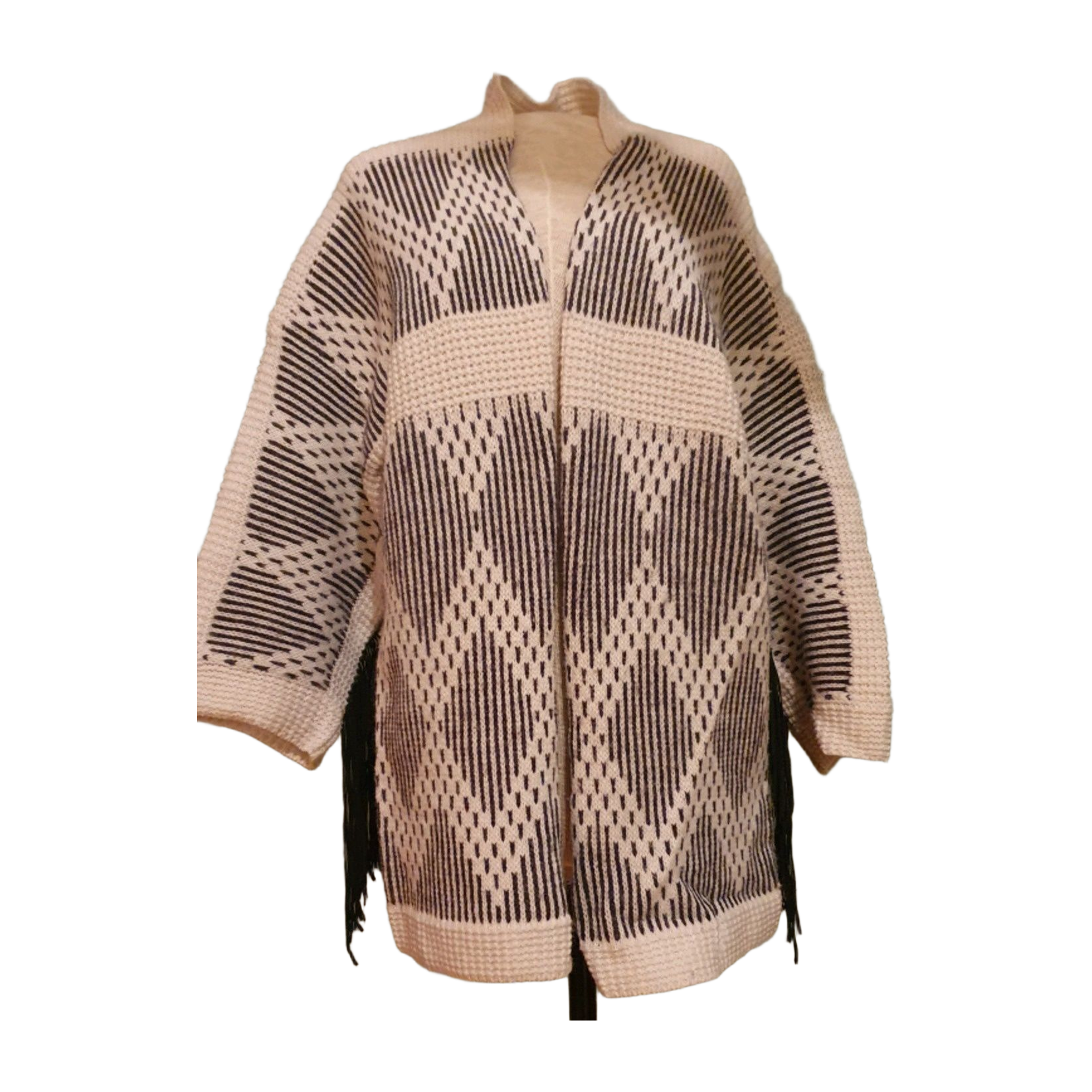 Musta-valkoinen neuletakki hapsuilla. Koko M.