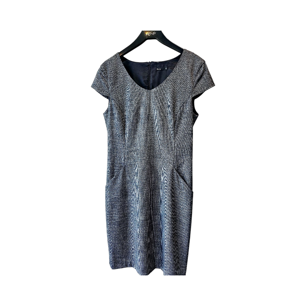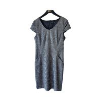 Tyylikäs harmaa kynämekko, lyhyet hihat, vetoketju takana