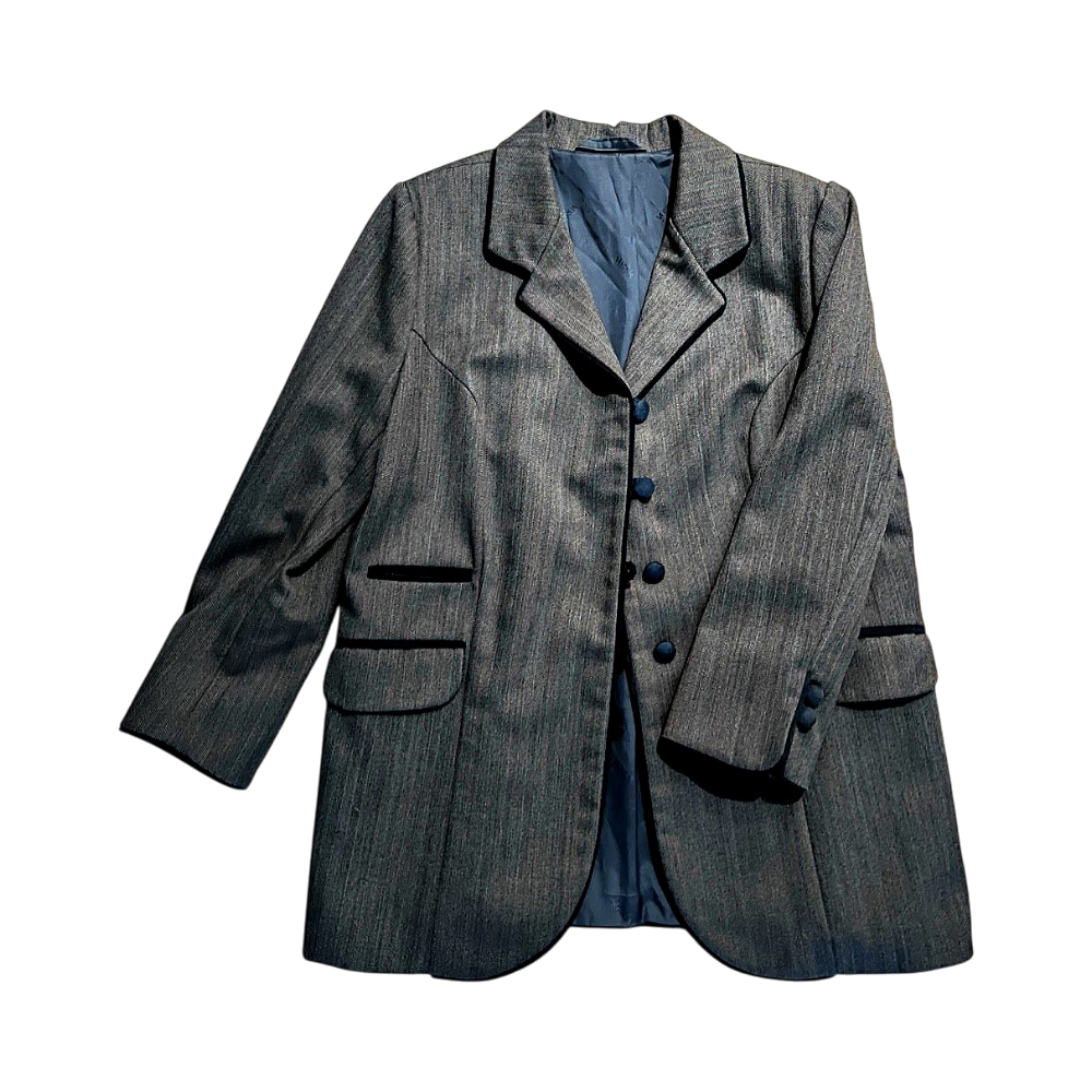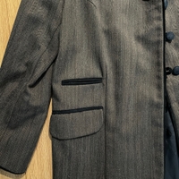 versus versace vintage kalanruoto bleiseri (1990-2000) jossa on punaisia ja sinisiä yksityiskohtia ympäri takkia, sisäkangas jossa on kirjailtuna versus versace logo on koko takin sisä osassa hihojen sisällä mutta myös taskujen sisällä, siinä on sametti napit niin keskellä kuin hihoissa. Takissa on muutamia langan vetoja mutta ne eivät näy ellei katso tarkasti. Koko arvio on noin XL