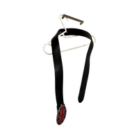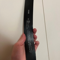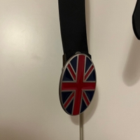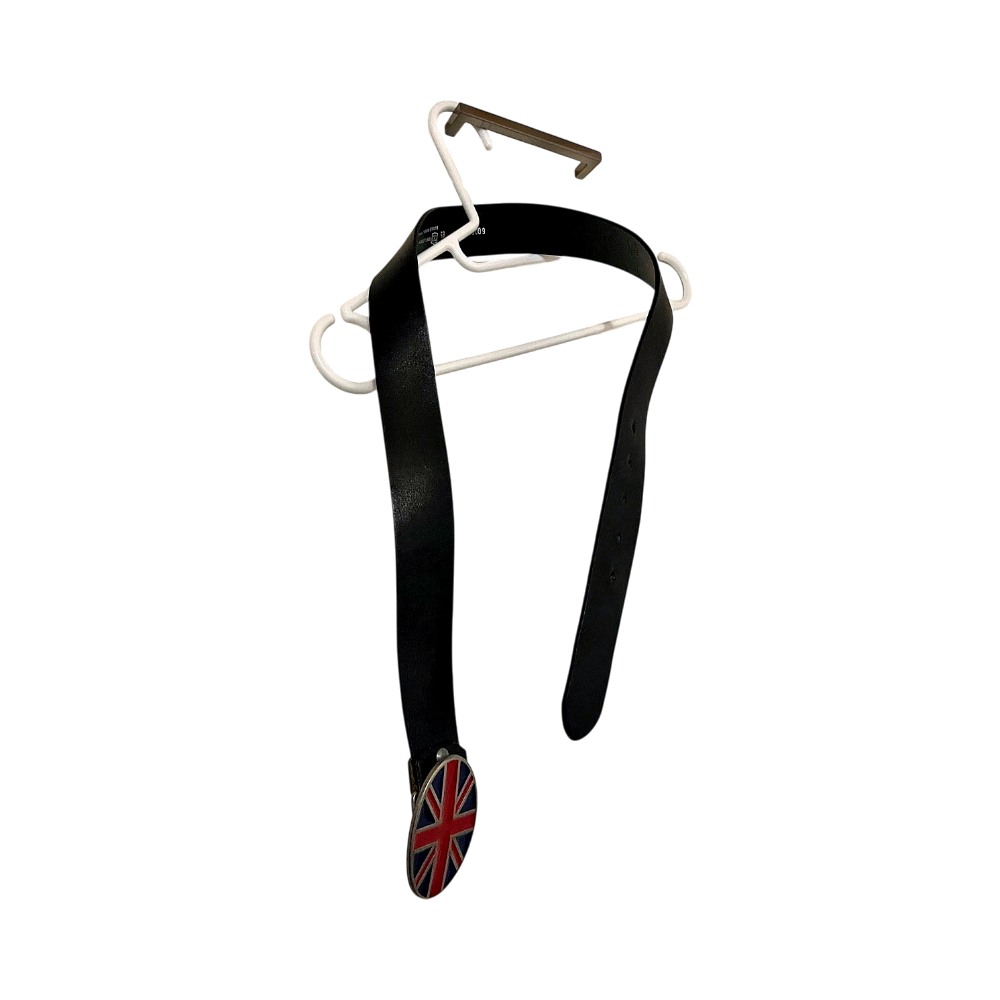 Musta 85cm pitkä vyö. Lukossa iso britannian lippu. Nikkeli vapaa. Eläintalous MMM, lisätietoja saa kysymällä