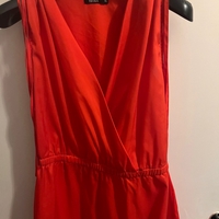 V-mallinen kaula-aukko, vyötäröllä kuminauha, helppo istuvuus.