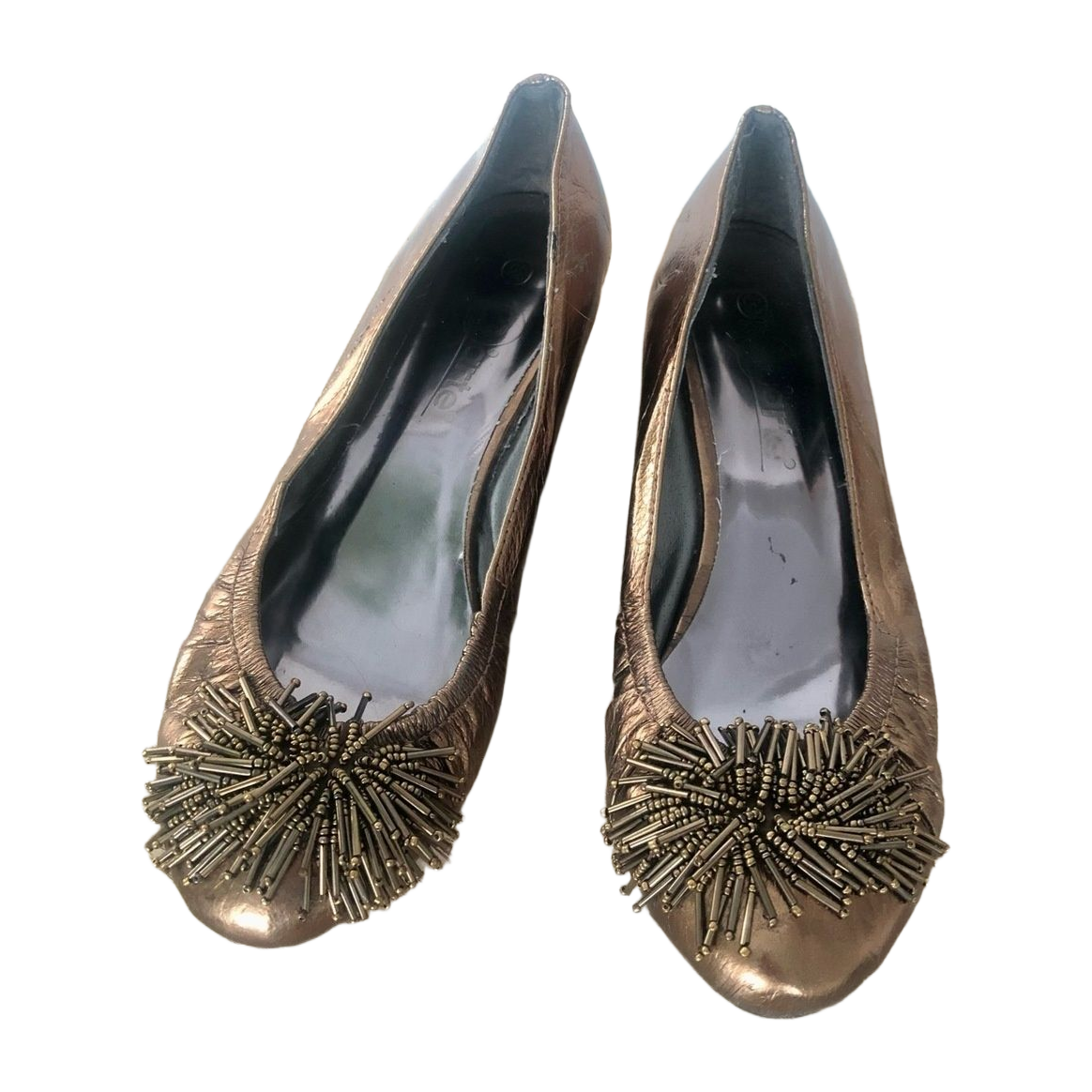 Matalat pronssinväriset kiilakorot kengissä lukee koko 38, mutta vastaa paremmin kokoa 37,5. Käytetty noin 10 krt. Hyvä kunto. Korko 3 cm.