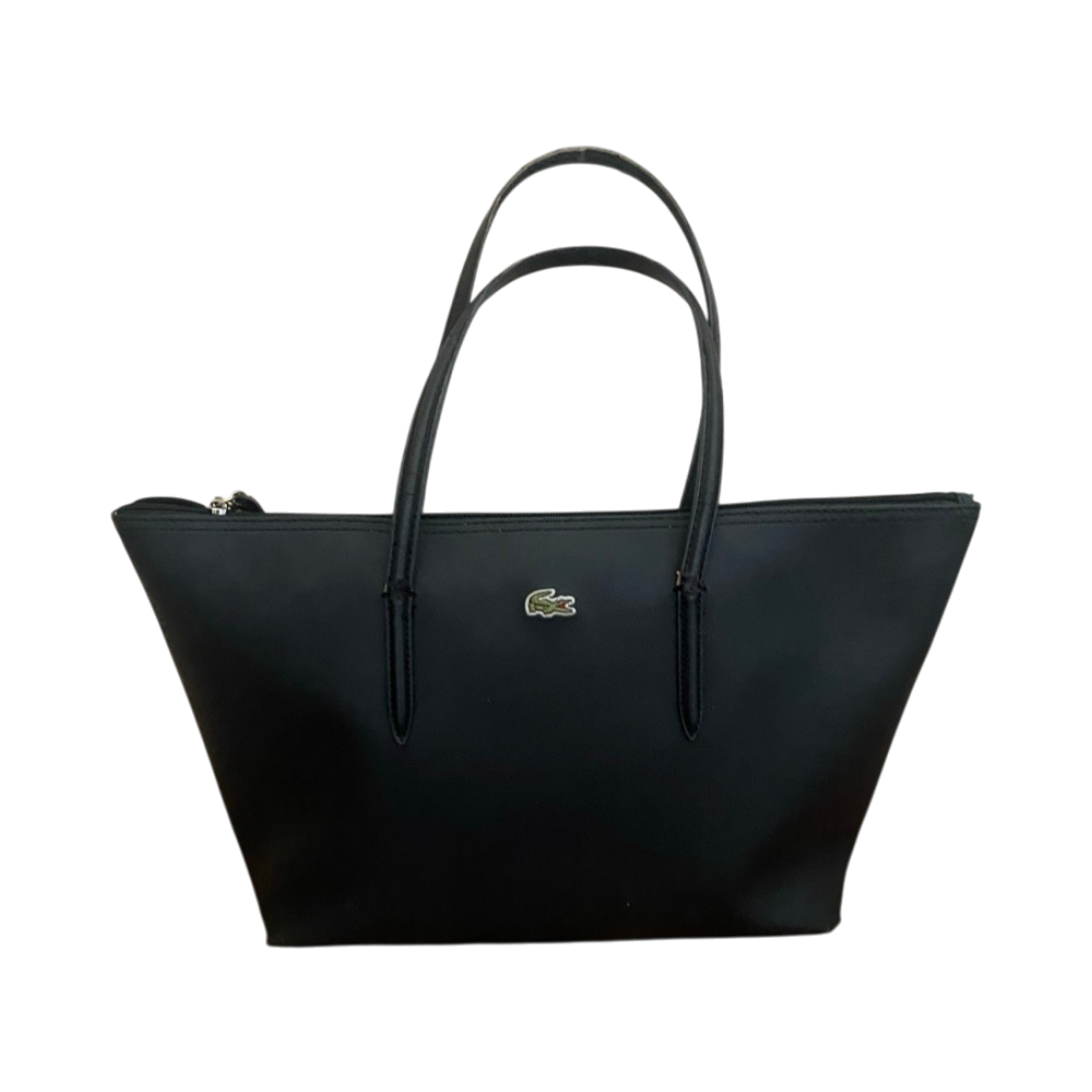 Tilava musta shopper-laukku, vetoketjusuljenta, olkahihnat.