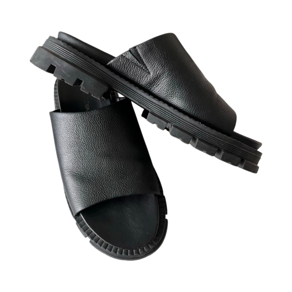 Vintedistä ostetut, itselle liian isot. Kävelty pari kertaa ulkona testimielessä. Agnes Cecilia Canary nahkasandaalit koko 39, minusta reilu koko ja sopii leveään lestiin. Laadukkaan tuntuiset, sisäsyrjällä pieni venyke joka auttaa kenkää istumaan paremmin.