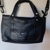 Nahkainen käsilaukku. Kotimaista tuotantoa. Useita lokeroita ja vetoketjutaskuja