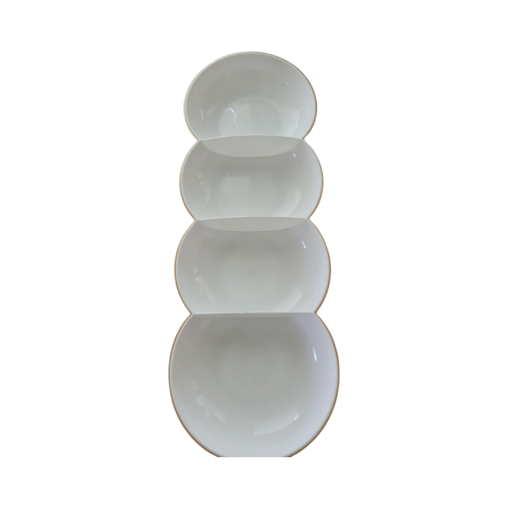 Tupperwaren Allegra-sarjaan kuuluva tarjoiluastia. Kaunis kulta/valkoinen väritys.