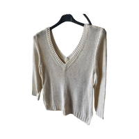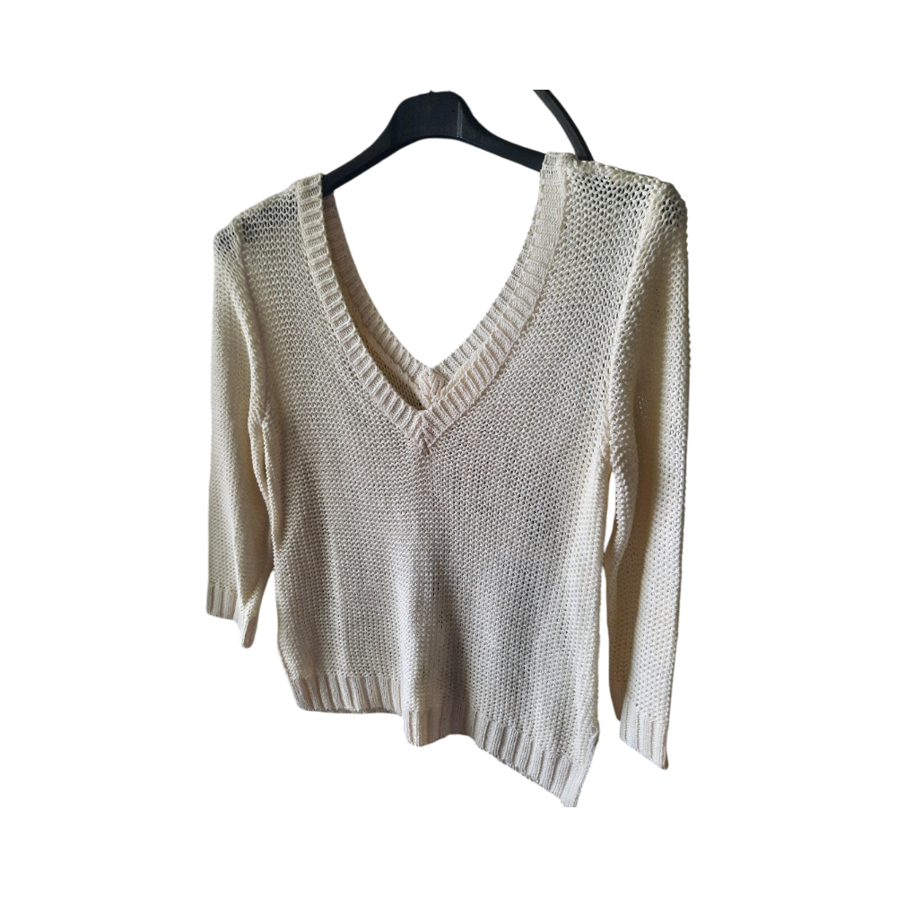 Väljä, vaalea V-aukkoinen neulepaita, rennosti avoin silmukkakude.