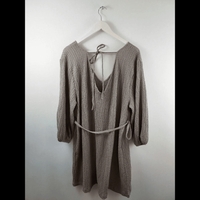 Pituus olka -helma 93 cm. Kaunis rypytetty pinta. Solmittava nauha vyötäröllä, niskassa solmittava naru selkäpuolella.