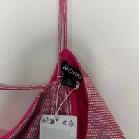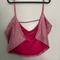 Lyhyt, kimaltava hihaton juhlatoppi.