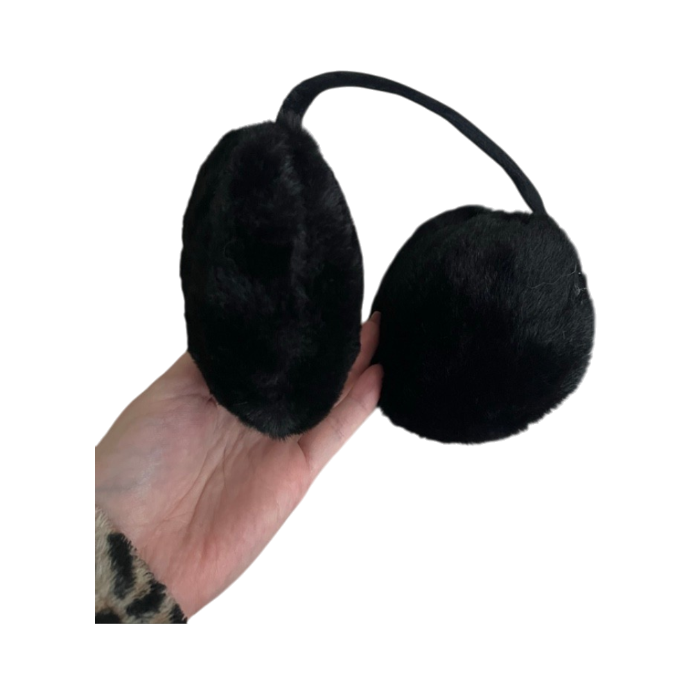 Pehmeät, mustat korvalämmittimet talvikäyttöön.