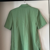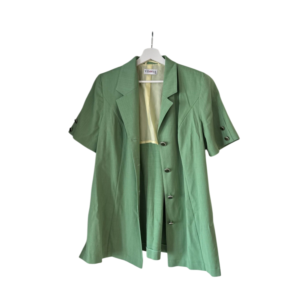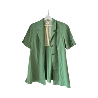 Vihreä olkatopattu lyhythihainen naisten bleiseri, napit edessä. Varanapit tallessa.