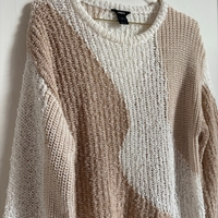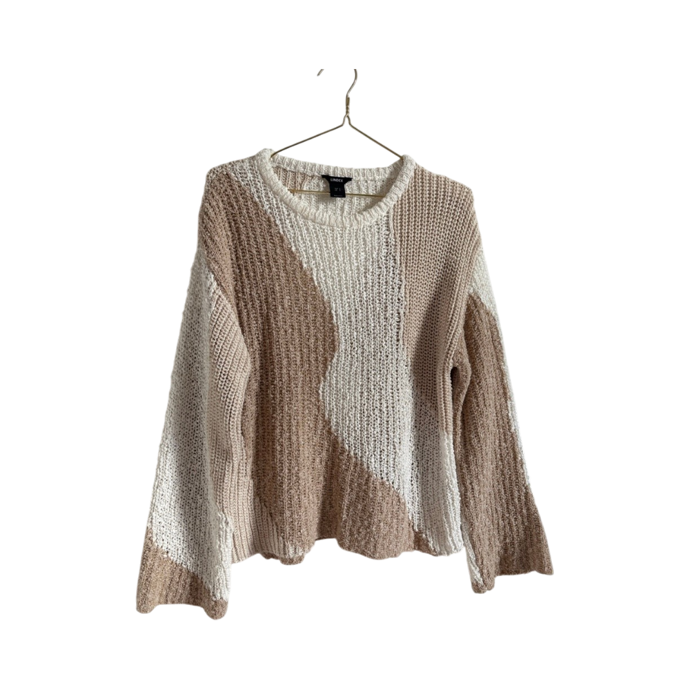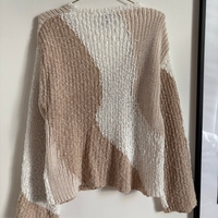 Ihana ruskean ja beigen sävyinen puuvillasekoiteinen neule, leveät hihat ja hieman oversize malli ✨