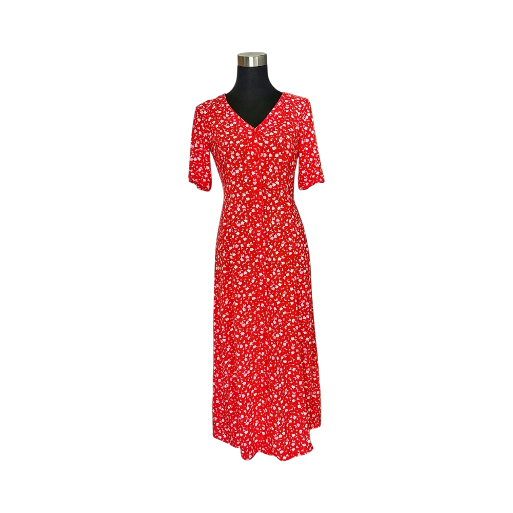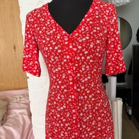 punainen kukkamekko