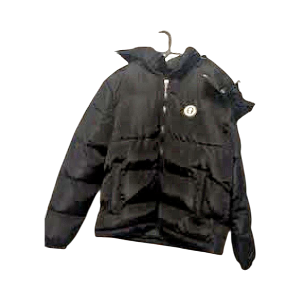 Stylish black Trapstar-style winter puffer with a bold logo on the back.