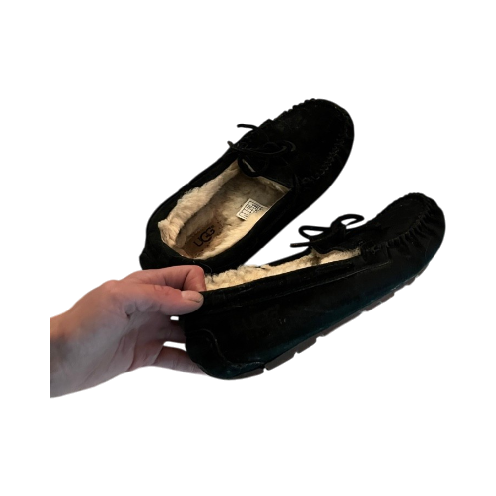 Mustat UGG-mokkasiinit, karvavuori, käytetyt mutta ehjät. Koko 37, menee kyllä 36.5-37.5