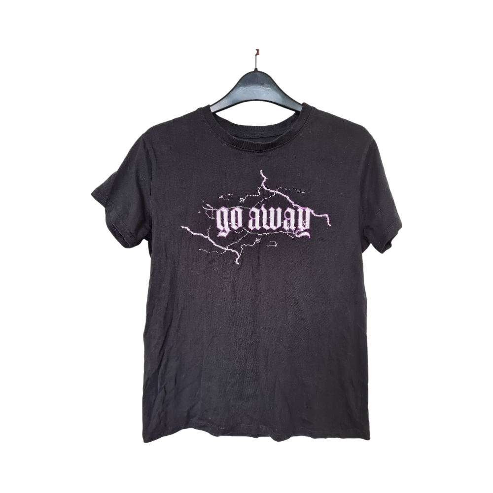 Mustapohjainen printtit-paita, lyhythihainen, rento malli.