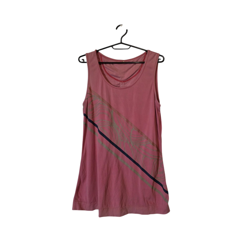 Kevyt, hihaton casual- tai treenitoppi, siro kultanauha selässä.