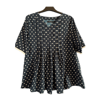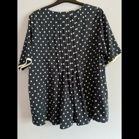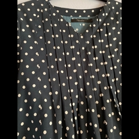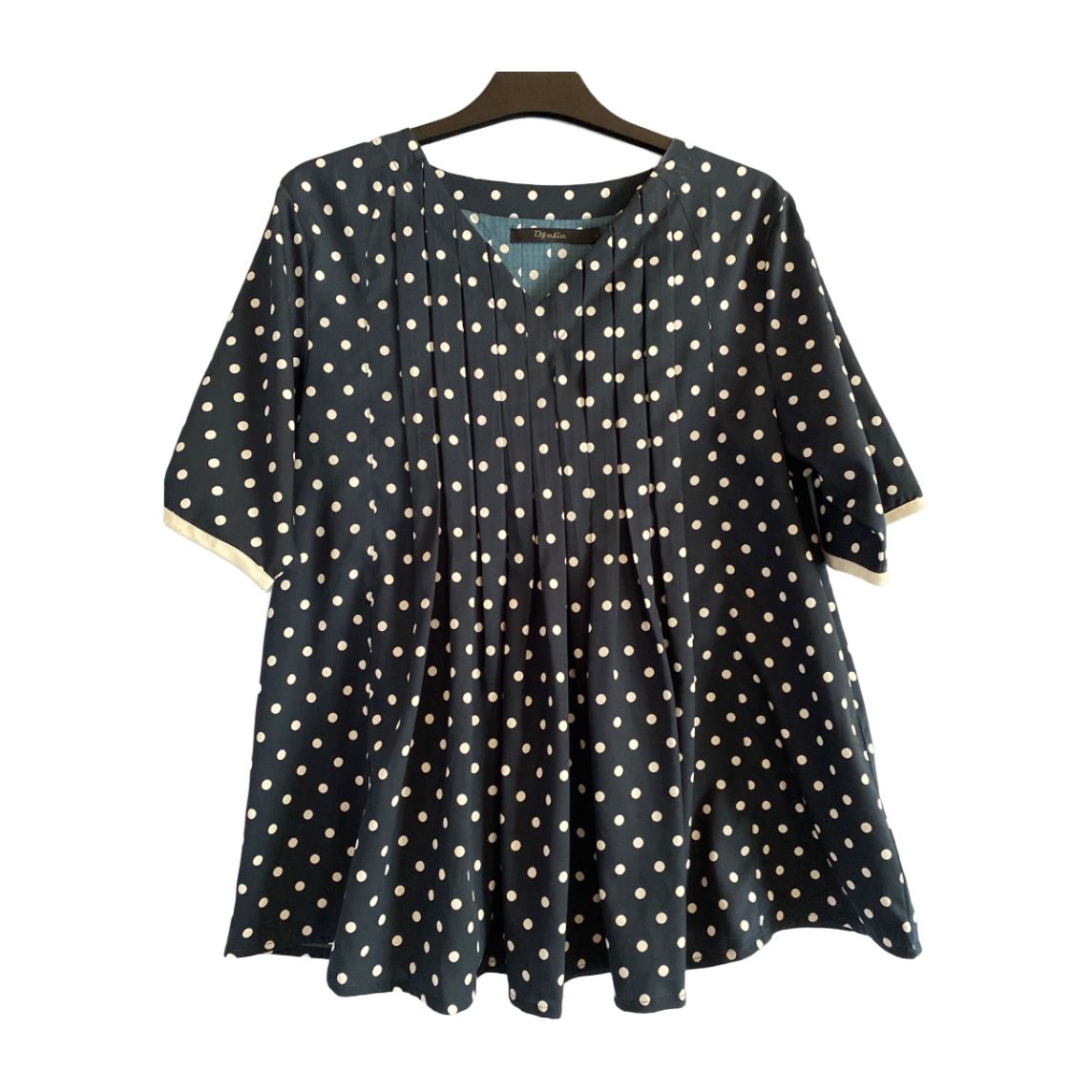 Kevyt paita jossa levenevä leikkaus. Lisäksi pliseeratukset rintaosassa ja selässä joten väljä ja kauniisti laskeutuva malli. Merkki Ofelia, koko merkitty L mutta menee hyvin kokoon XL. Ei vain ole tullut käyttöön.