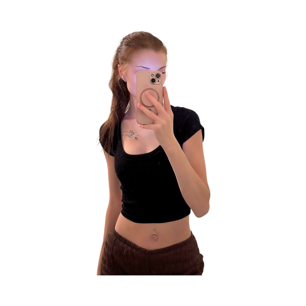Tyylikäs ja mukava musta lyhyt t-paita.