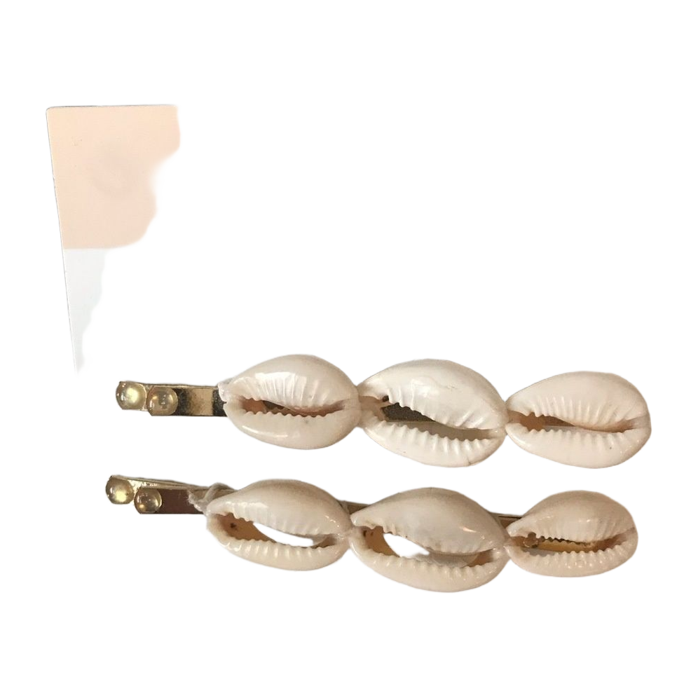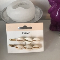 Hiuspinnit, joissa söpöt simpukat 🐚 Käyttämättömät ja ovat omassa pakkauksessaan :)