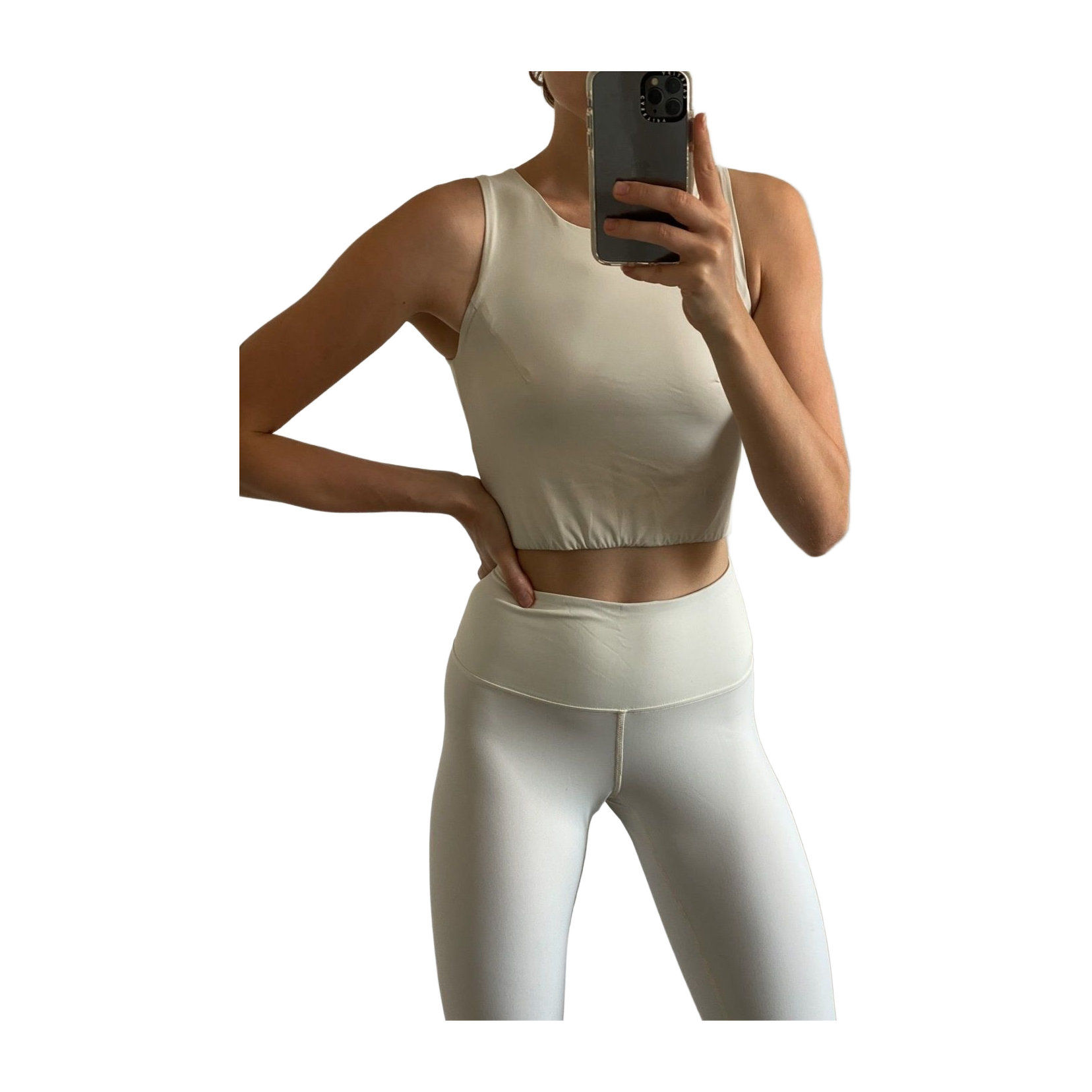 SELLING THE WHOLE SET 🤍 Atelier Manola active set in a creamy white colour 🤍 "Core Top" and "Core Leggings" sold out in this colour. Tag says S but this definitely fits like XS as that's my usual size. Recycled materials ✨ top is double lined. The pants are sheer but fine with nude underwear. #activewear #sustainable