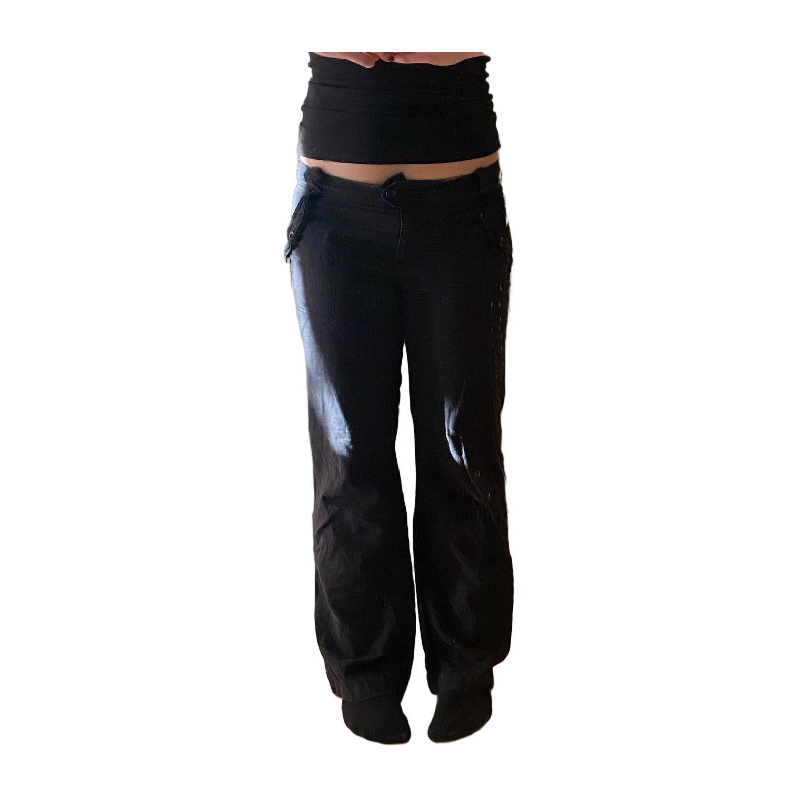 Black wide leg low waisted linen pants, mustat leveälahkeiset matalavyötäröiset pellavahousut, size s-M