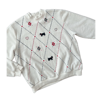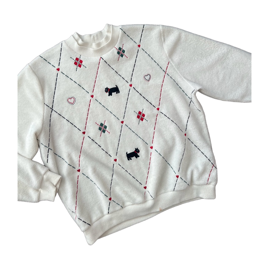 Pehmoinen koira-aiheinen pörröfleece, hyvä käytetty kunto. Koko l, pituus 66cm ja kai kai mitta 63cm