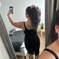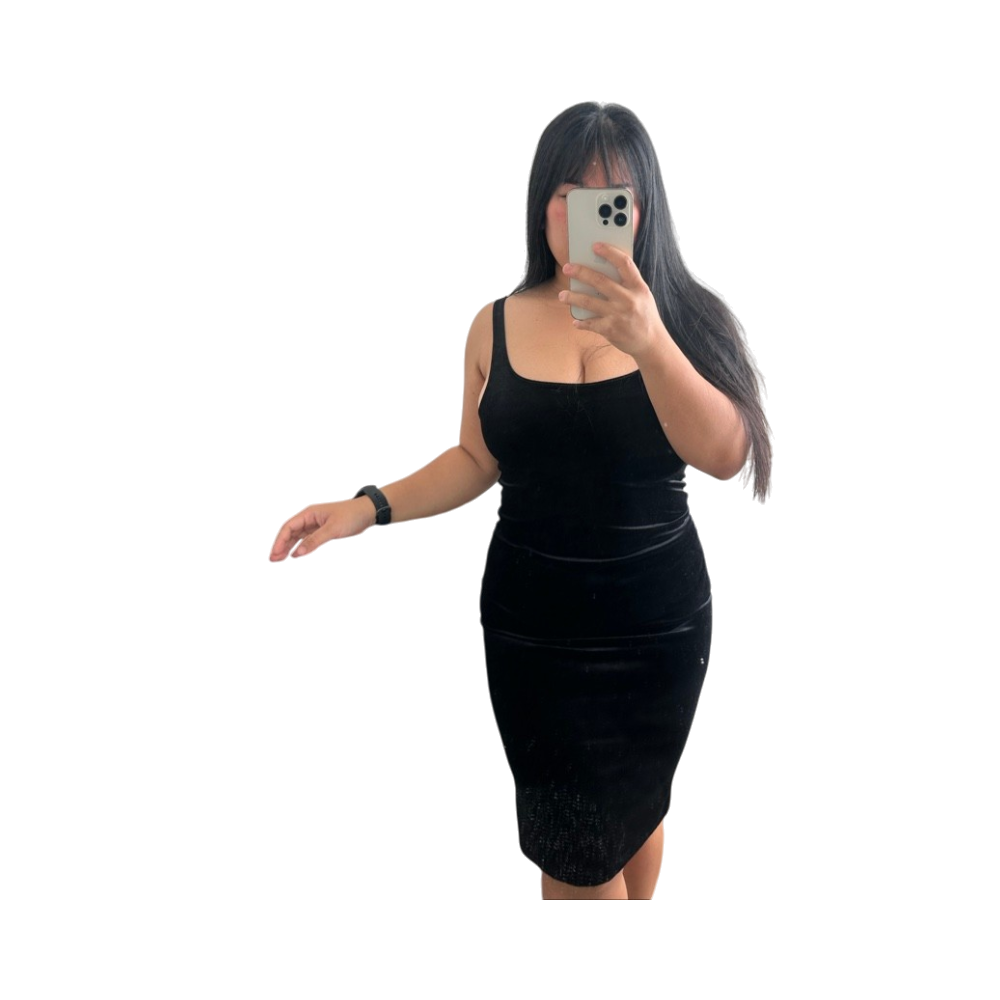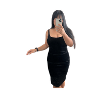 Musta kapea samettimekko olkaimilla, polvipituus.