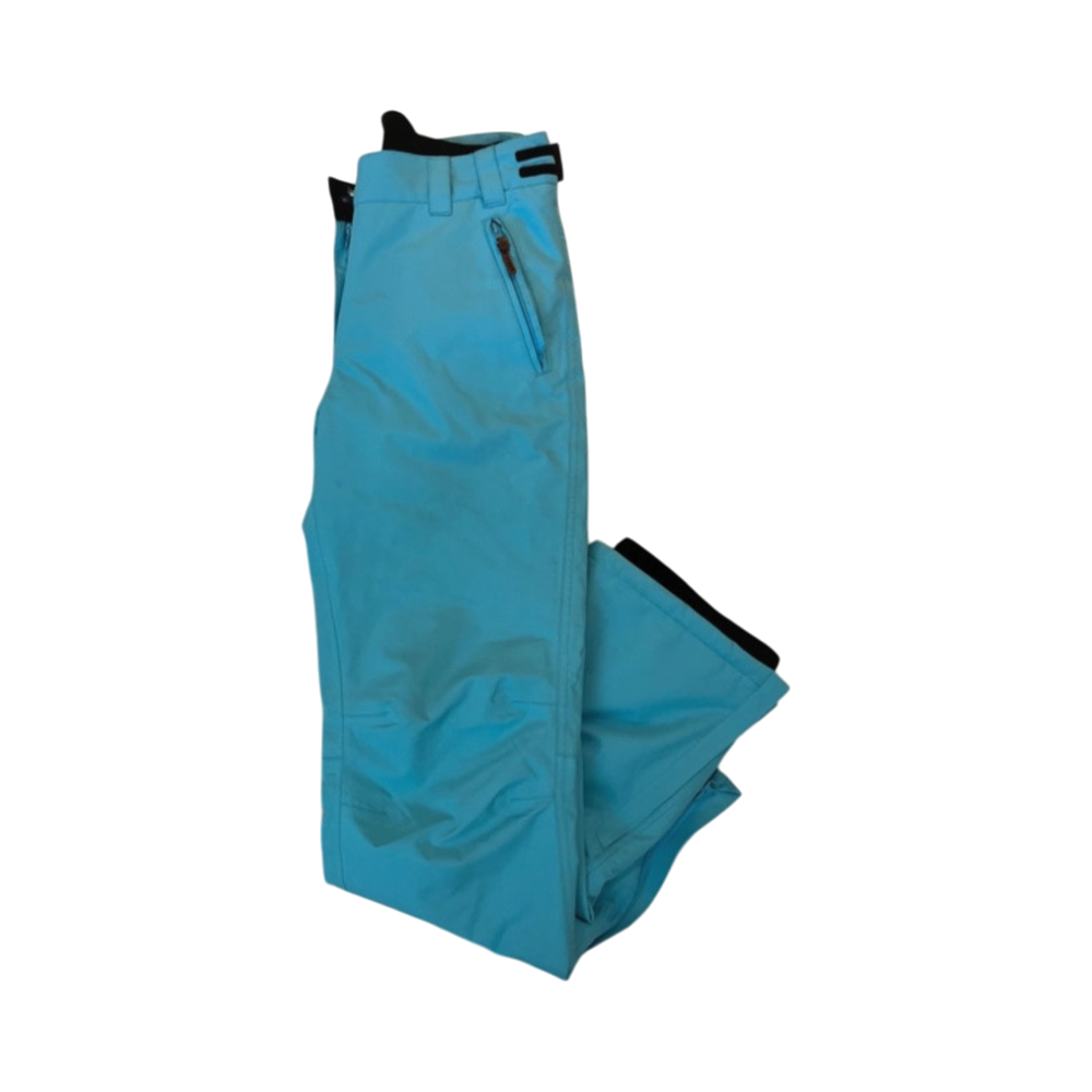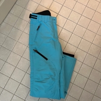 Icepeacin Turkoosit toppahousut, reidessä joku rapatahra joka lähtenee pesussa. Toinen tasku vetoketjusta revennyt ( ei siis itse housut vaan vain vetoketju irti kankaasta ) näppärä korjaa, ei kuitenkaan vaikuta käyttöön.