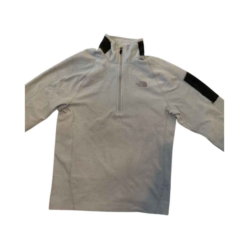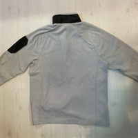 Lightweight grey fleece with black accents, long-sleeve zip collar.