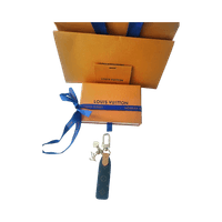 Käyttämätön ja täysin uusi Louis Vuittonin avaimenperä. Mukana tulee myös säilytyspussi ja -laatikko, omistuskirjoituslaput (iso ja pieni) sekä pieni kantokassi. Kantokassissa ryppyjä ja käytön jälkiä.