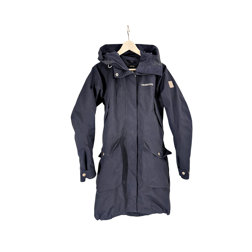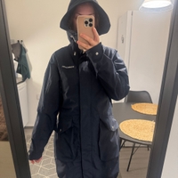 Pitkä, 100% waterproof takki hupulla, käytetty mutta hyvässä kunnossa.