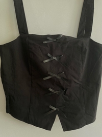 Uusi ja käyttämätön, vain laput irroitettu. New Yorker musta toppi rusettiyksityiskohdilla. Koko L, vastaa mielestäni kokoaan. Vetoketjukiinnitys helpottaa pukemista. Käyttämättömyydestä huolimatta eläintalous 🐈