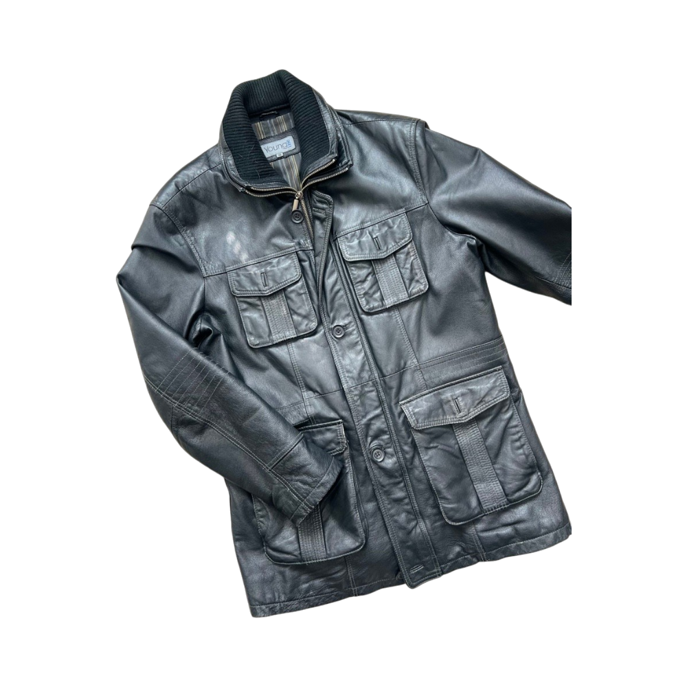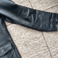 Miesten siistikuntoinen nahkatakki, koko 48. Edessä irrotettava lisävetoketjullinen osa. Pituus 77cm ja kai kai mitta noin 58cm. Sopii myös unisex mallina