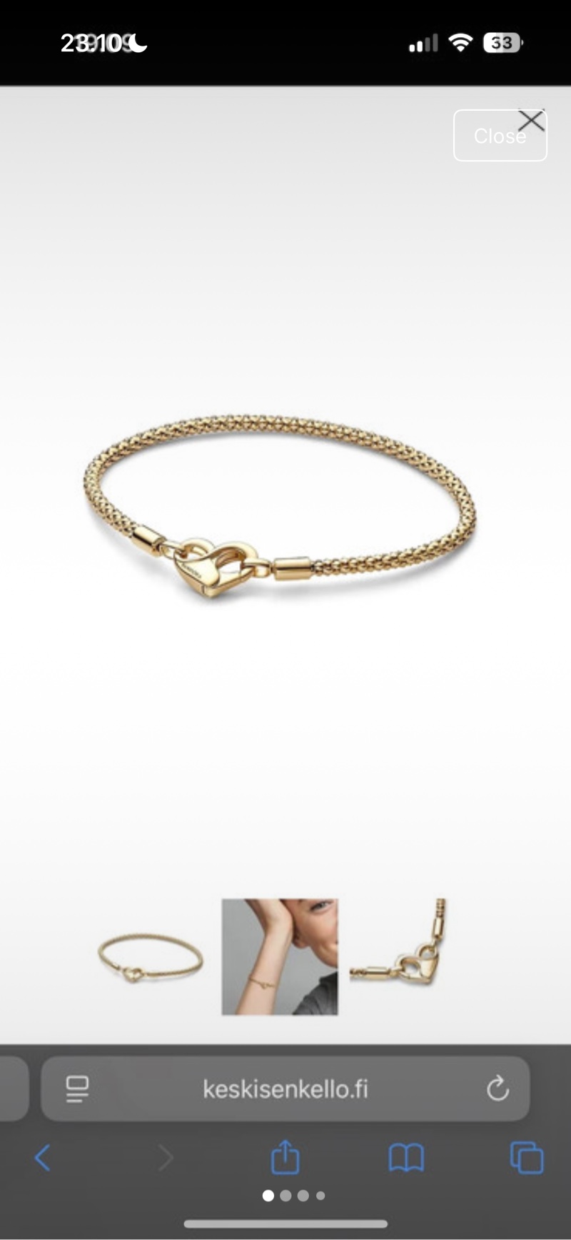 Pandoran 14k kullattu moments keräilyrannekoru. Hyvässä kunnossa, ei vaan enää käyttöä itselle. Koru n. 19cm pitkä. Ei ole boksia tai kuittia kun on lahjaksi saatu.