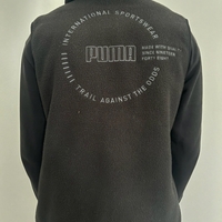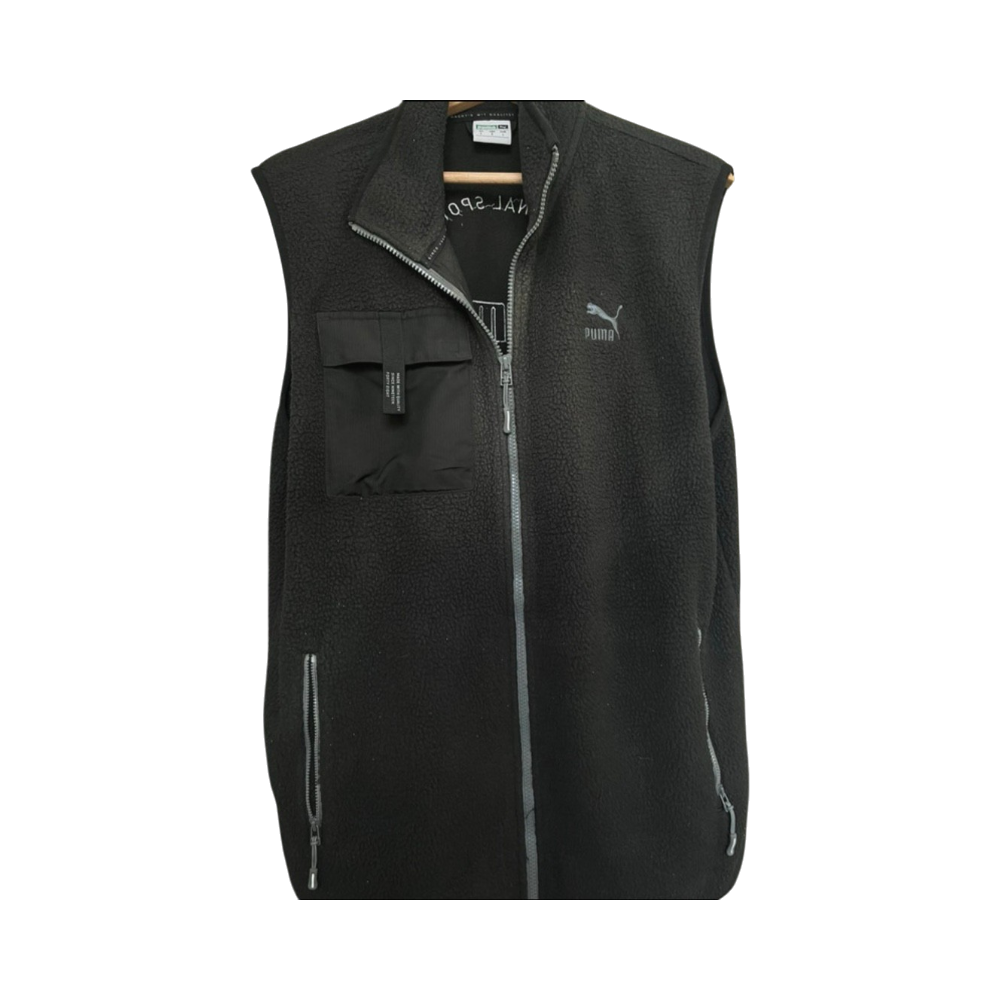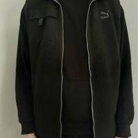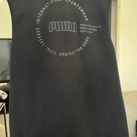 Mustaa fleeceä, vetoketjullinen ja logo selässä. Osittain nukkaantunut.