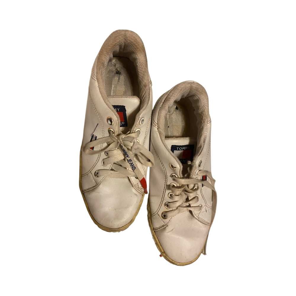 Valkoiset Tommy Jeans -tennarit, kuluneet .
