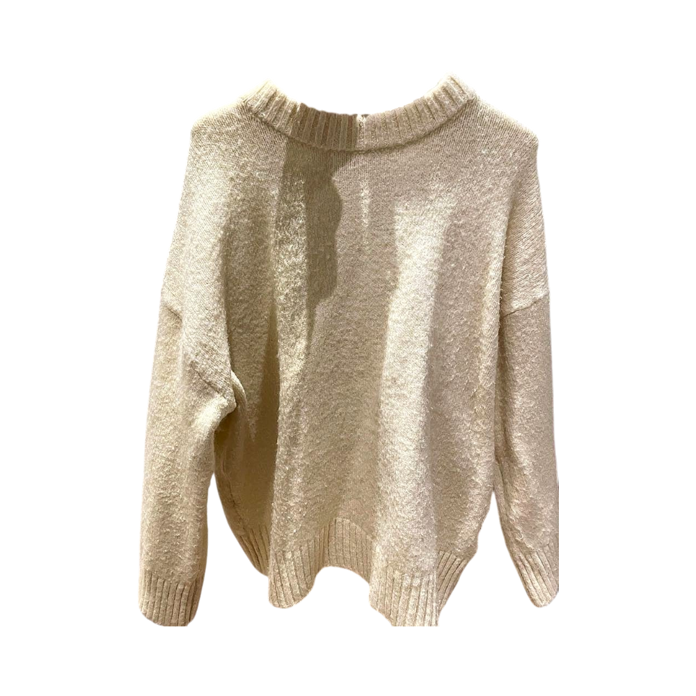 Cozy cream sweater, perfect for winter layering.