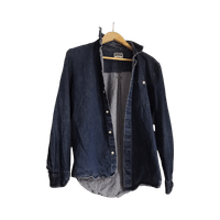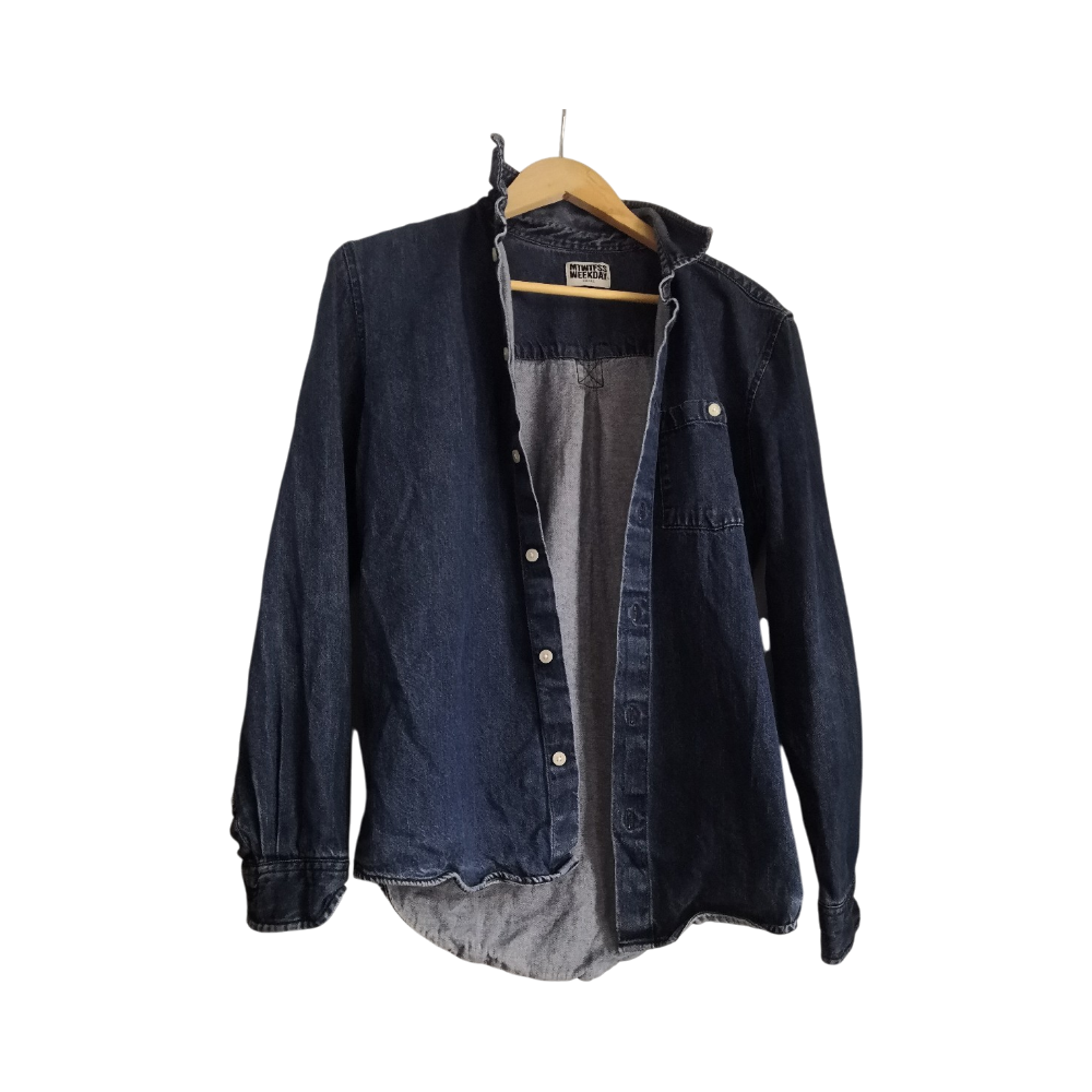 Naisten tummansininen denim-paita, napit edessä, rintatasku. Koko S. Erinomainen kunto. 100% puuvillaa.