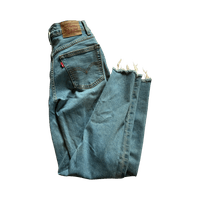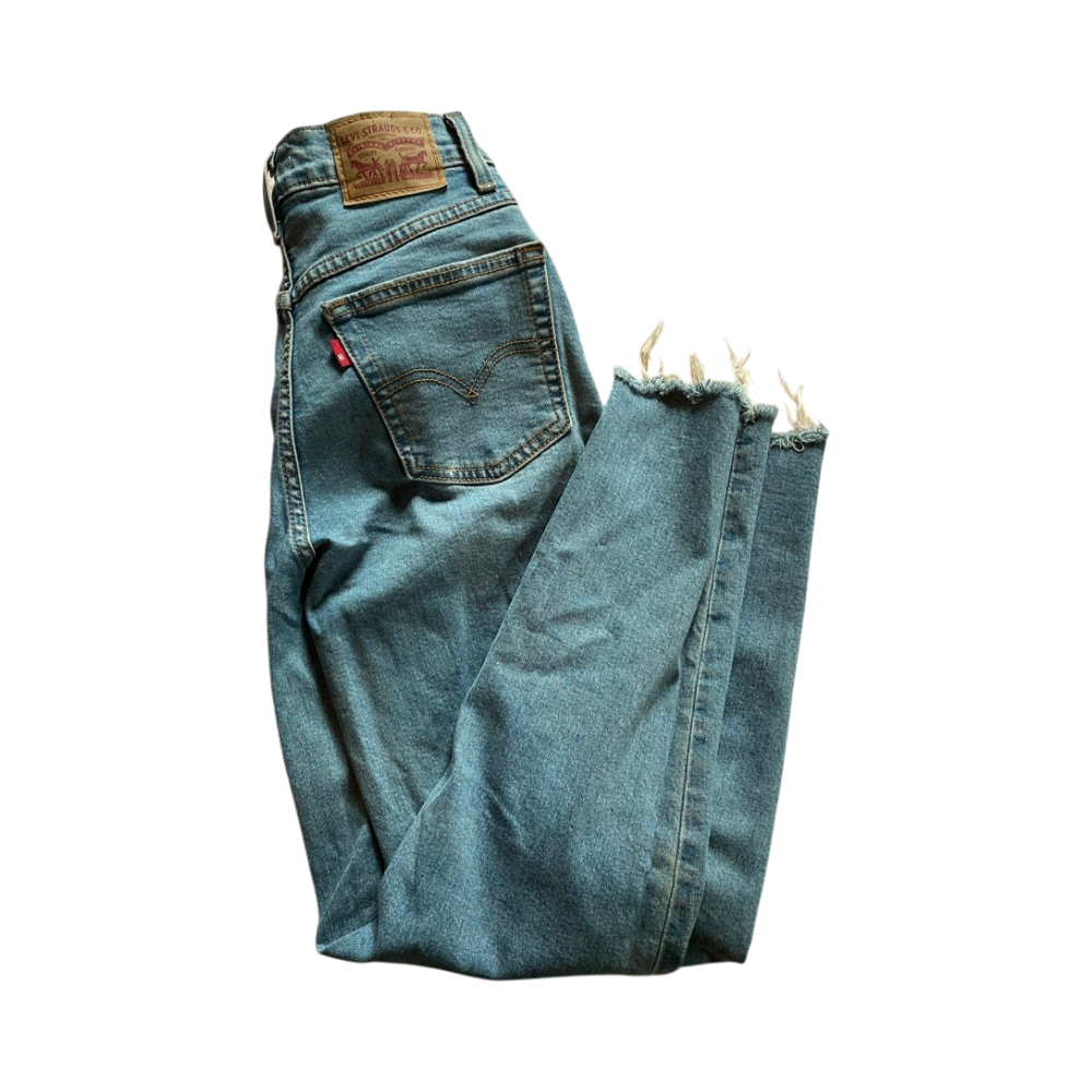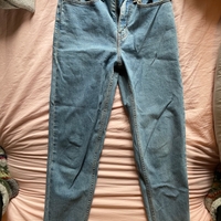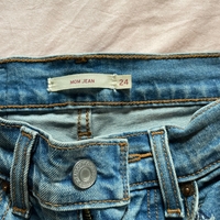 Vaaleansiniset mom-fit farkut, revityt lahkeet, koko 24.