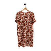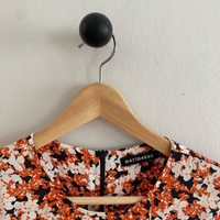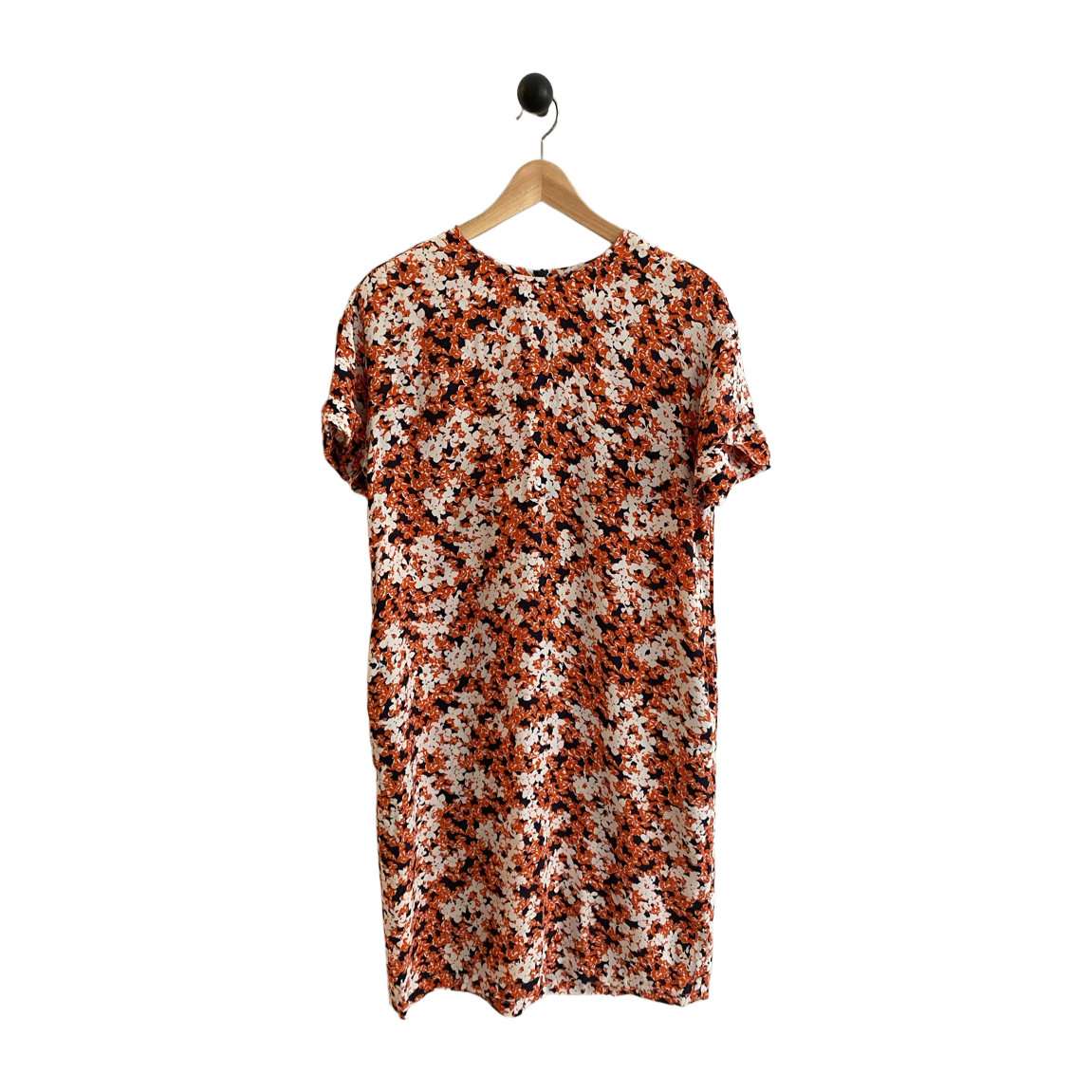 Marimekon kukkakuosinen mekko, 100% viskoosi, lyhythihainen. Ihana rypistymätön, vilpoinen viskoosi-kangas.