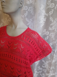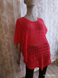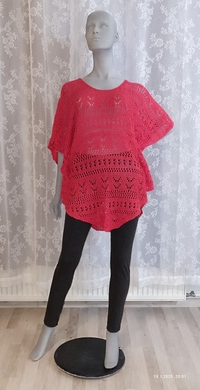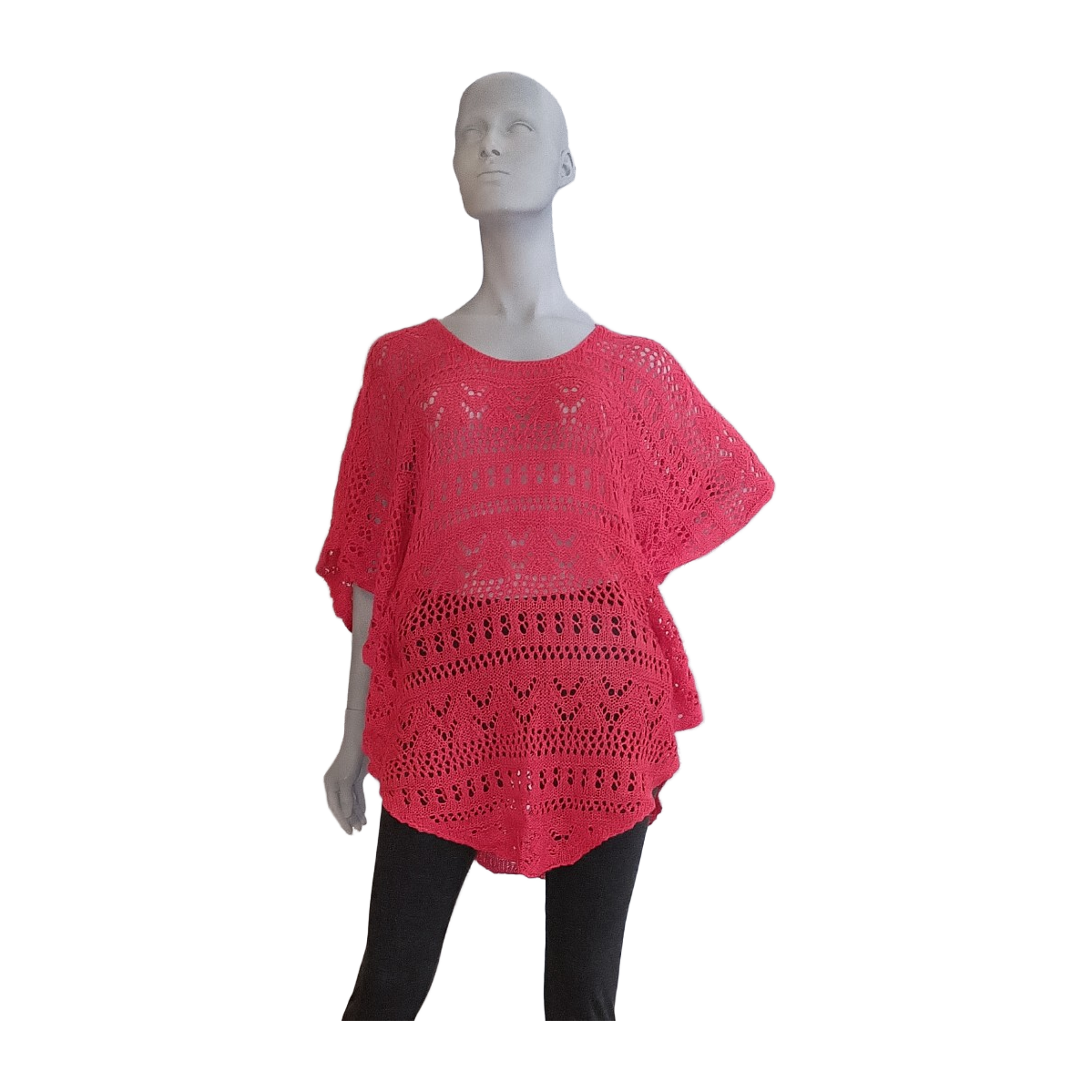 Pinkki neule. Ekoissa kuvissa väri näkyy ehkä aidoimpana. Mielestäni on kuin uusi, mutta materiaalilappu on leikattu pois. Kokoa ei lue, mutta mallinukke on noin S-M ja itse olen noin XXL (46) ja menee hyvin päälle.