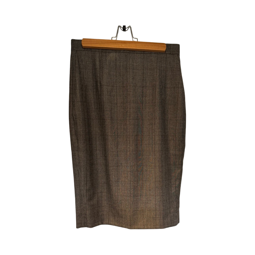 Tailored grey wool pencil skirt, lined, Italian-made.