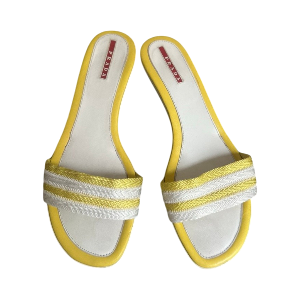 Yellow white Prada kitten heels💛🤍 comes with original packaging