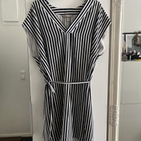 Myydään uudenveroinen H&M raitamekko. Raidat ovat tummansinisiä.